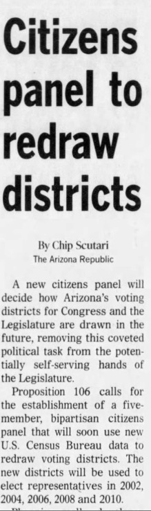 Led by Pederson, and with the support of several organizations, including the League of Women Voters and Common Cause, the language of the proposition to officially create the Arizona Independent Redistricting Commission was crafted.