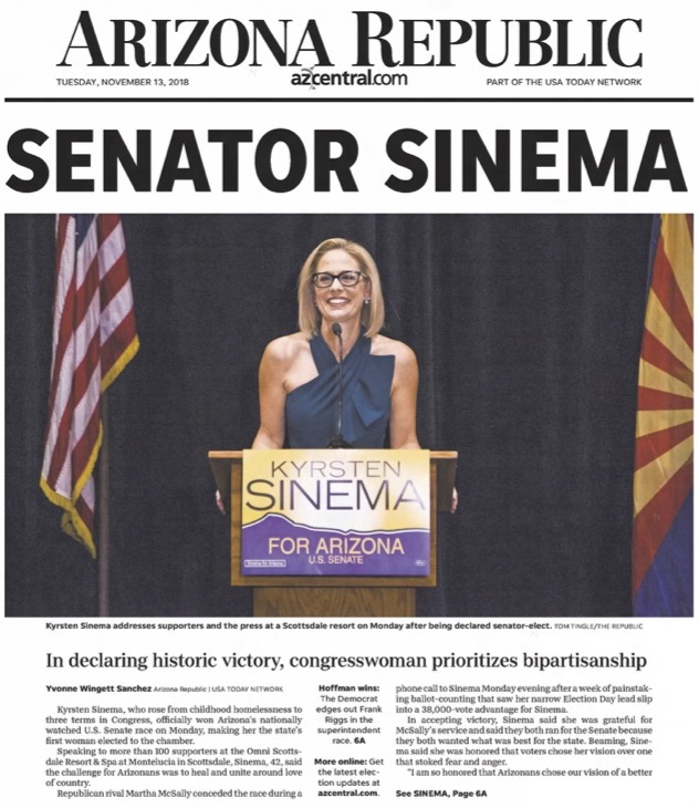 The nation was riveted by the slow-moving count until the Associated Press called the race in favor of Sinema on Nov. 12. Arizonans had elected their first Democrat to the Senate since 1985, when Dennis DeConcini won his third and final term, a seat he would hold through 1988.