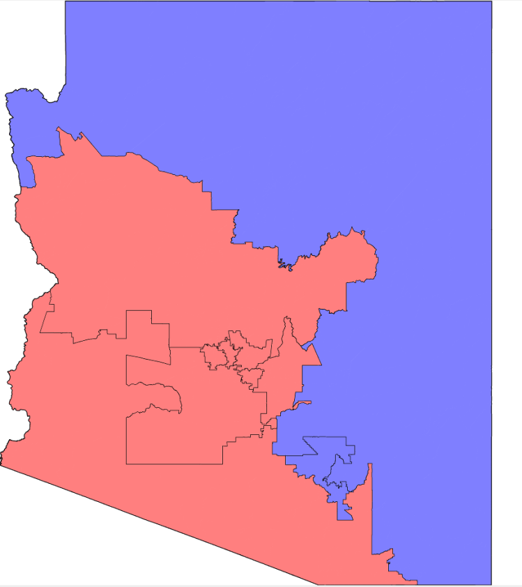The second hardest issue to adhere to is respecting city boundaries. With so much of the population clustered in the Tucson and Phoenix metro areas, it’s very difficult to draw a map that doesn’t split the metro areas and counties. Keeping them together would likely result in a district that is Democrat leaning. In the Phoenix metro, the demographics of the west and east valley and central portions of the metro are very demographically different. It is possible to draw the districts competitively but that would likely come with a sacrifice of keeping cities and towns together.